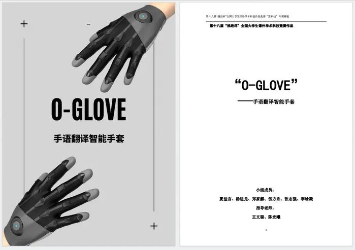 近日,第十八届“挑战杯”全国大学生课外学术科技作品竞赛组委会正式公布第十八届“挑战杯”全国大学生课外学术科技作品竞赛“黑科技”专项赛评选结果,由南京艺术学院工业设计学院青年教师王文聪、陈光曦两位老师指导,夏佳言、郑家麒、杨进龙、伍方舟、张志强、李晗凝等6名本科生共同完成的作品《O-GLOVE——手语翻译智能手套》斩获国赛“星系级”作品(最高奖)。