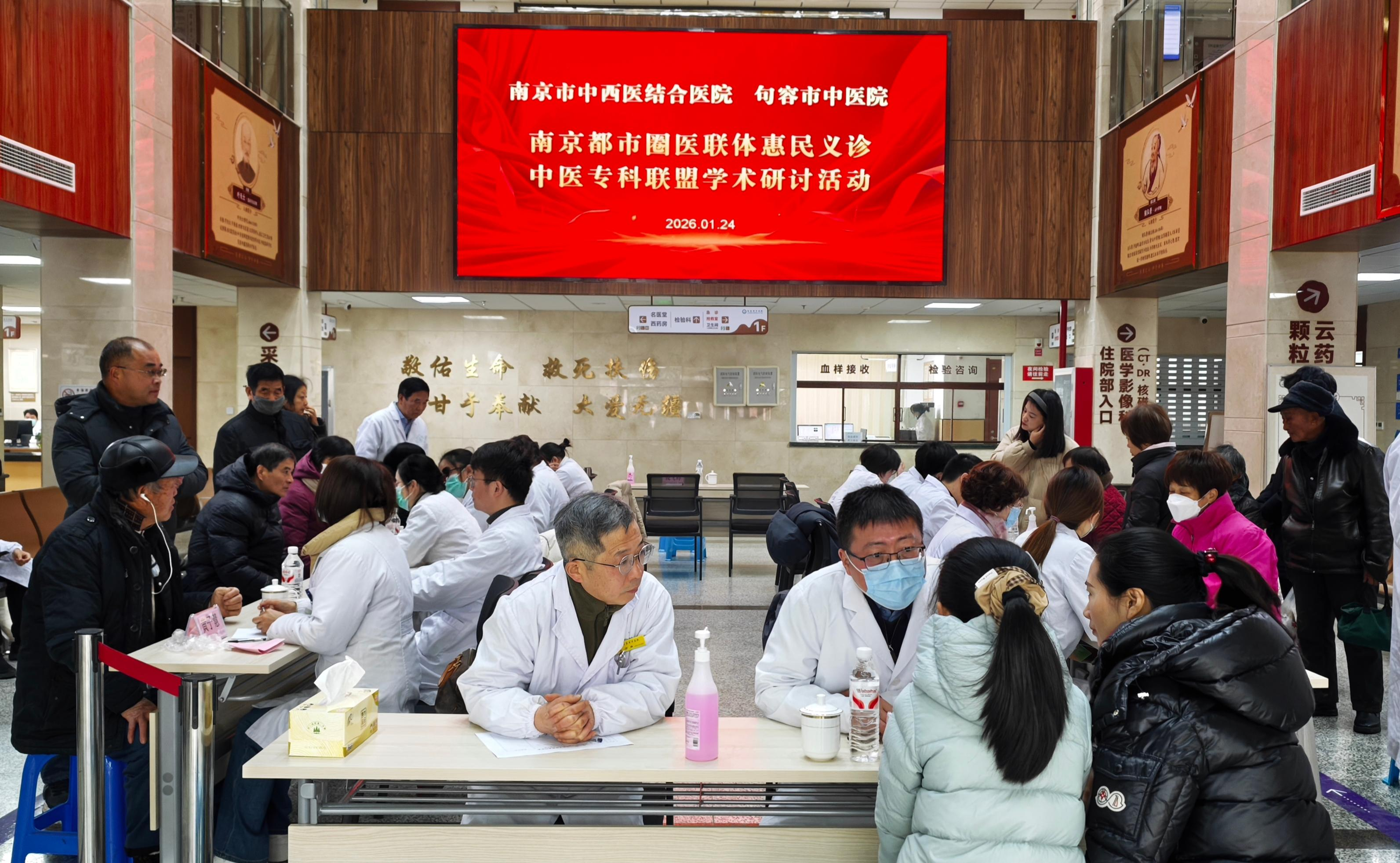 1月24日,在新春佳节来临之际,南京市中西医结合医院携手句容市中医院,在句容市中医院门诊大厅联合举办了“南京都市圈医联体惠民义诊”系列活动。作为深化南京都市圈医联体建设的具体举措,此次活动将三甲医院优质医疗资源下沉至基层,让句容市民近距离感受中西医结合领域高水平专家的健康关怀。
